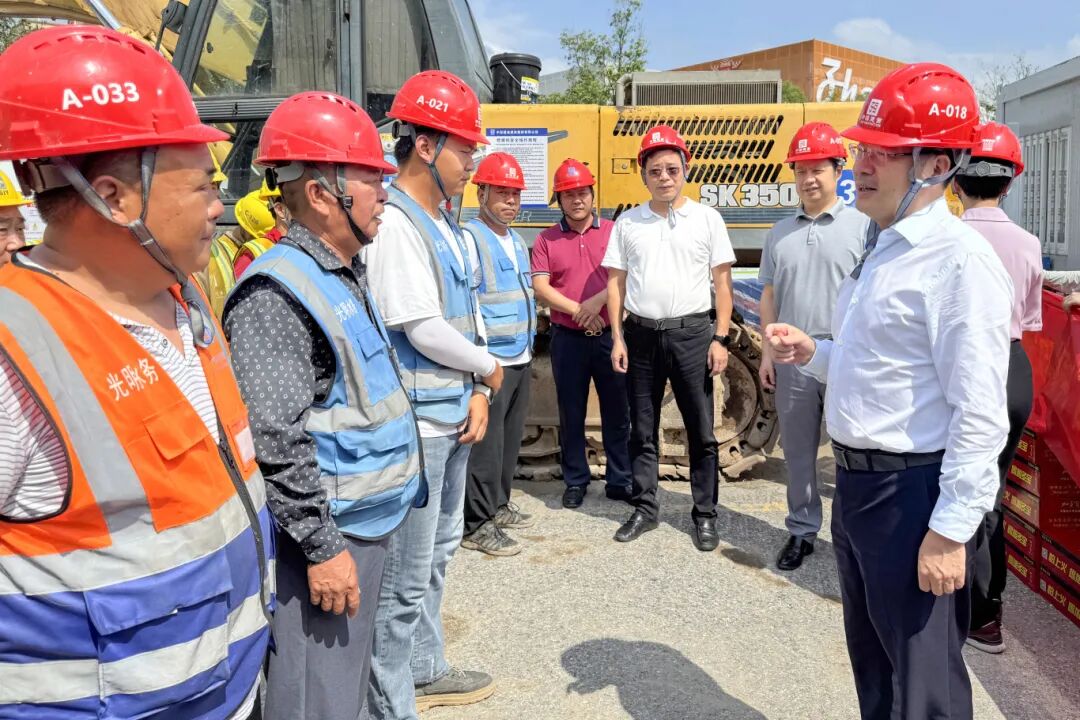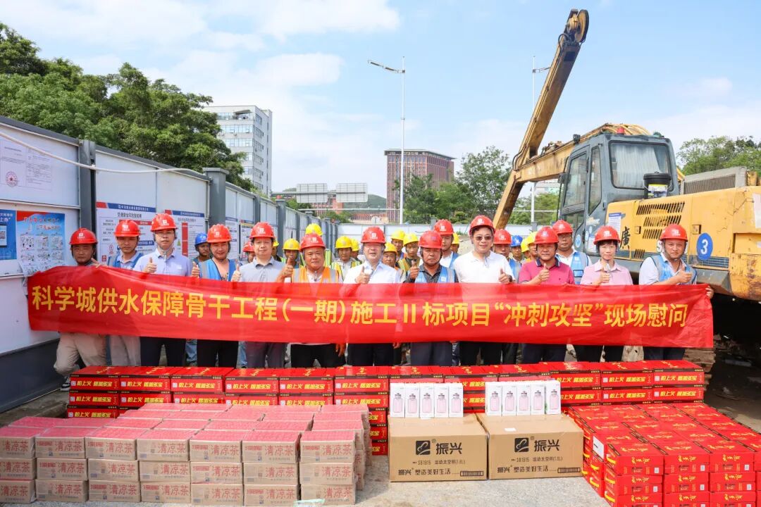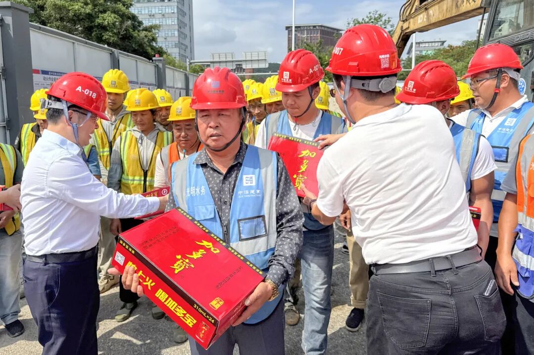 2025年5月8日下午,光明区人大常委会副主任、光明区总工会主席陈晓中一行前往集团承建的科学城供水保障骨干工程(一期)施工Ⅱ标项目,开展“冲刺攻坚”专项慰问活动,为奋斗一线的建筑工人送去慰问物资与暖心关怀。